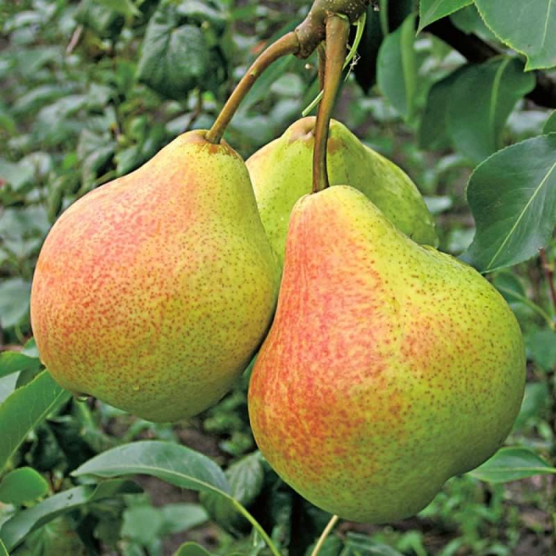 Плоды средние, при обильном плодоношении наблюдается неодномерность, широкогрушевидные, поверхность гладкая. Кожица блестящая. Окраска в момент съемной зрелости: основная светло-желтая, покровная в виде легкого загара по меньшей части плода. В период потребительской зрелости основная золотисто-желтая, покровная оранжевая по меньшей части плода, подкожных точек мало. Плодоножка длинная, изогнутая, средней толщины. Воронка мелкая, средняя, чашечка полуоткрытая, блюдце мелкое, узкое, слегка ребристое. Сердечко среднее, камеры закрытые, средние, подчашечная трубка средняя, котловидная. Мякоть кремовая, сочная, сладкая, полумаслянистая, без терпкости, с небольшими грануляциями у семенного гнезда.