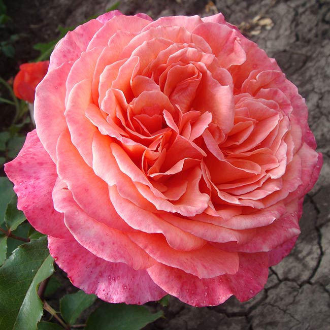 Для этого сорта характерно одиночное цветение, или максимум 3 цветка на одной ветви. Каждый цветок крупный – до 15 см в диаметре при полном распускании. Его густую махровую чашу составляет большое количество лепестков. Окраска бутона – лососевая с желтым оттенком, окаймление – более темное. Внизу цветок желтый, а сверху красный. Лепестки плотные и закругленные.