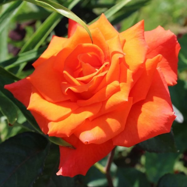У Monika очень длинные элегантные бутоны, которые распускаются в красивые цветки яркого алого цвета с золотым основанием. Эта насыщенная окраска хорошо держится и не выгорает. Цветки появляются обычно по одному на длинных побегах, благодаря чему сорт хорошо подходит для срезки. Куст высокий, с обильной темно-зеленой листвой, устойчивой к болезням. Цветение обильное. Изумительно смотрится при посадке в живой изгороди, можно посадить на задний план бордера.