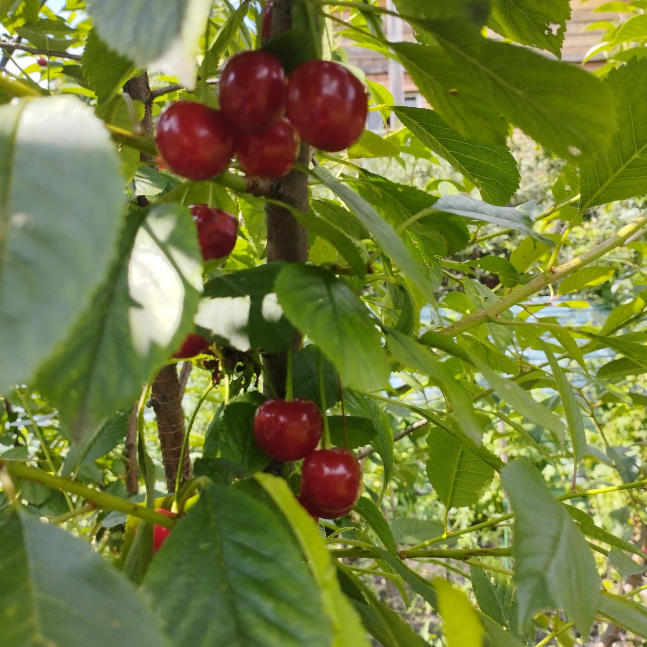 Вишня обыкновенная 'Десертная волжская' представлена деревьями средней силы роста, с овально-округлой, раскидистой кроной.