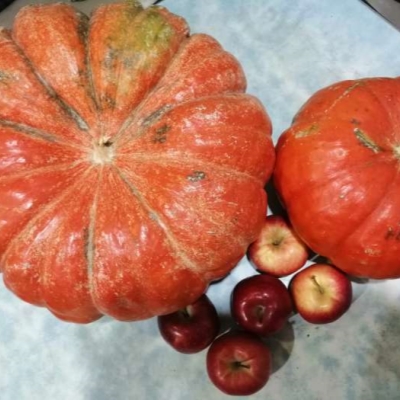 На одном взрослом и здоровом растении может сформироваться от 2 до 5 крупных приплюснутых плодов. Вся поверхность созревшего овоща разделена на равноценные фрагменты и имеет выемку возле плодоножки. Масса тыквы находится в диапазоне от 5 до 15 кг и зависит от региона культивации и особенностей агроухода. Тонкий кожистый покров имеет мелкобугристую структуру и однотонный оттенок, который может быть как красно-оранжевыми, так и темно-розовым. Сочная и очень массивная мясистая внутренняя часть окрашена в оранжевый цвет и имеет хрустящую структуру. Некрупные семенные гнезда состоят из планцет среднего размера, которые заполнены средними белыми эллипсовидными семенами. Особое внимание необходимо уделить химическому составу овоща, в котором содержится до 36% каротина, а также огромное количество незаменимых витаминов и микроэлементов.